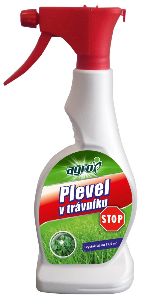 AGRO Plevel v trávníku STOP RTD (ready to dilute) je selektivní systémový herbicid k hubení dvouděložných plevelů v trávníku. Aplikujte postřikem. Účinek je patrný již několik hodin po aplikaci. Oceníte bezpečné a praktické použití bez odměřování. Spektrum účinnosti: sedmikrásky, ptačinec žabinec, pcháč, pampeliška, svízel, rmen, hluchavka, kopřiva, penízek, kokoška, lebeda, pomněnka, jitrocel, svlačec aj. Srážky 2 hodiny po aplikaci již neovlivní účinek.