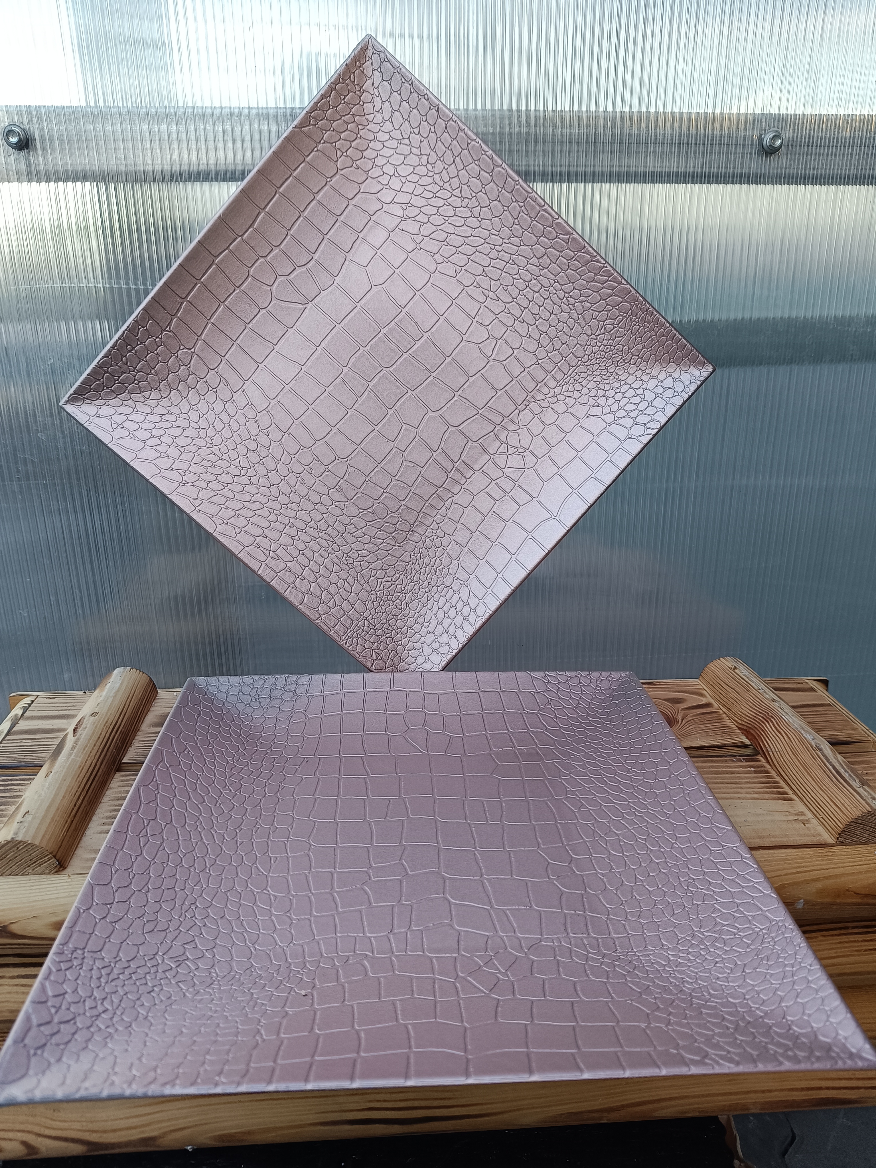 - Dekorační talíř čtverec růžový kůže - plast 30cm