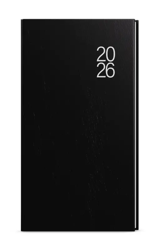 Kapesní týdenní diář v černé barvě je vyráběný z oblíbeného, jemně strukturovaného materiálu. Jedná se o praktický doplněk do každé kapsy, který díky velkému prostoru na poznámky, ulehčí Vaše plánování.