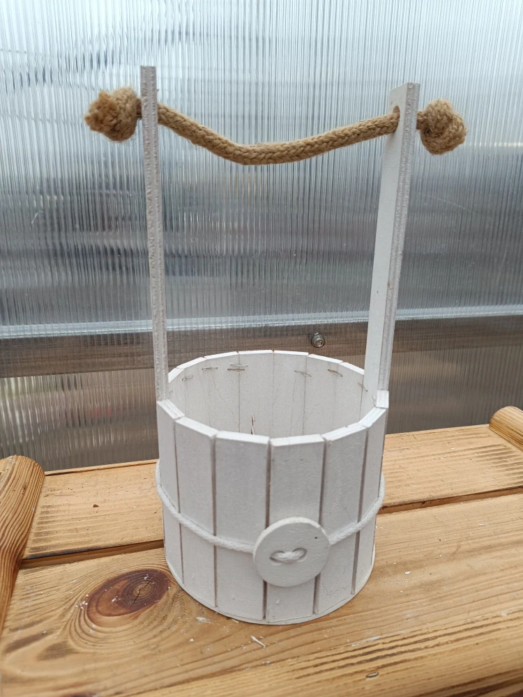 - Dřevěný dekorační květináč s provázkem - bílý 13x25cm