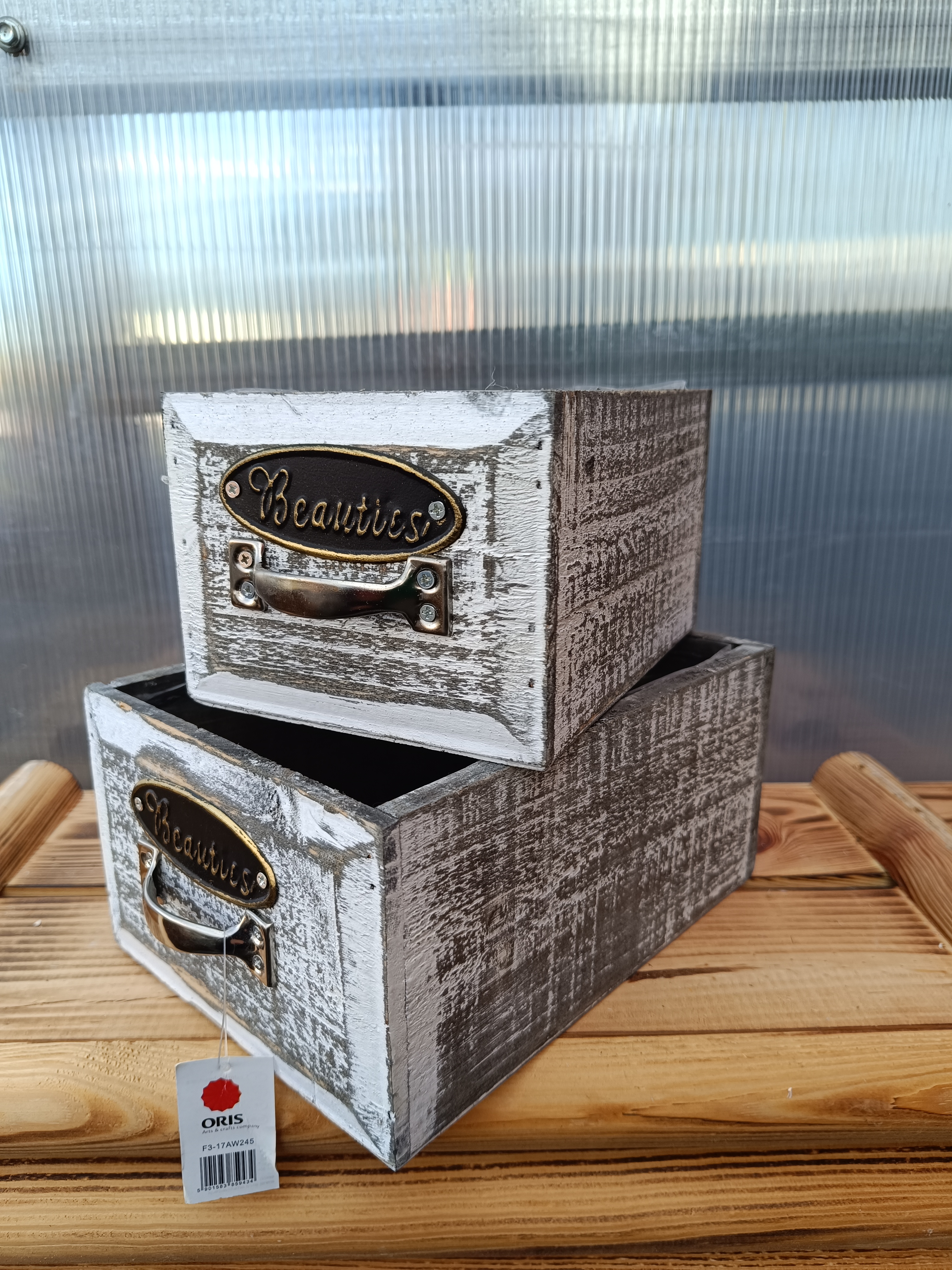- Dřevěný dekorační truhlík Beauties - šuplík bilý sada 2ks