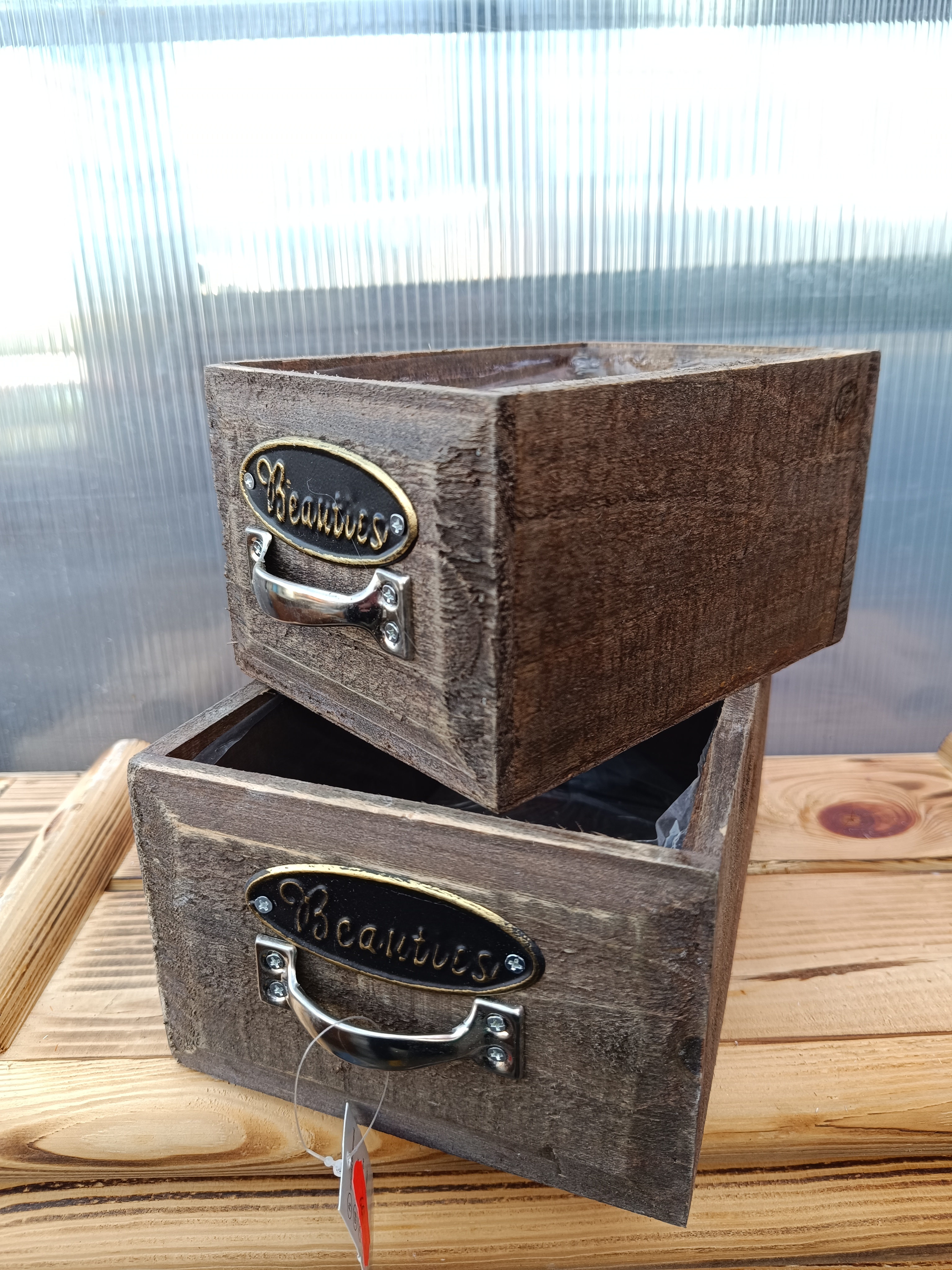 - Dřevěný dekorační truhlík Beauties - šuplík přírodní sada 2ks
