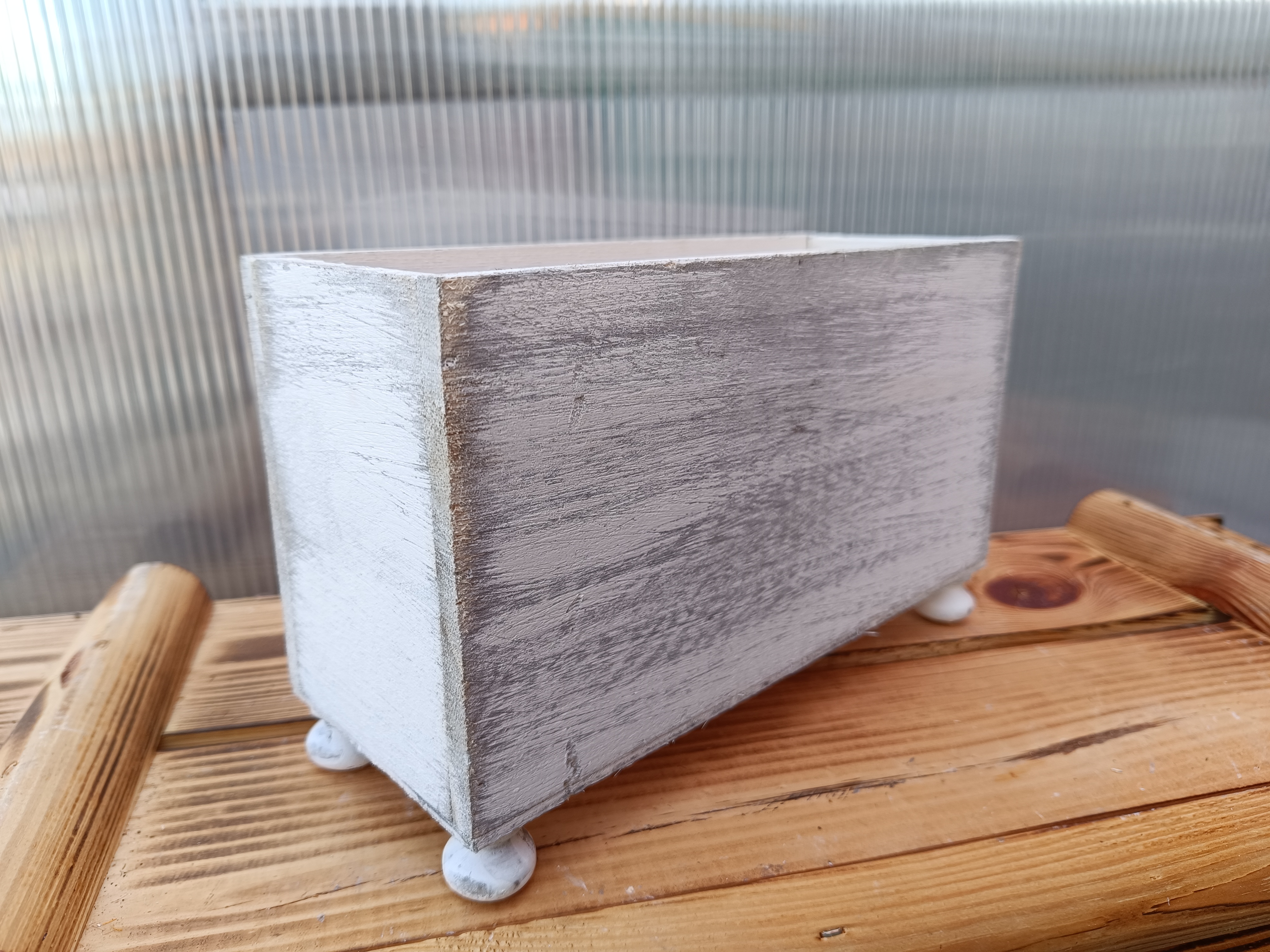 - Dřevěný dekorační truhlík bílý - obdelník na nožkách 23x9cm