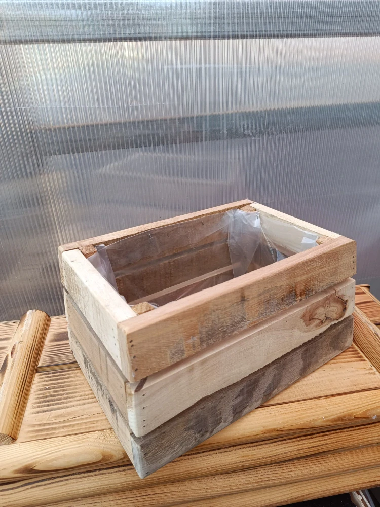 Dřevěný dekorační truhlík s vnitřní plastovou ochranou