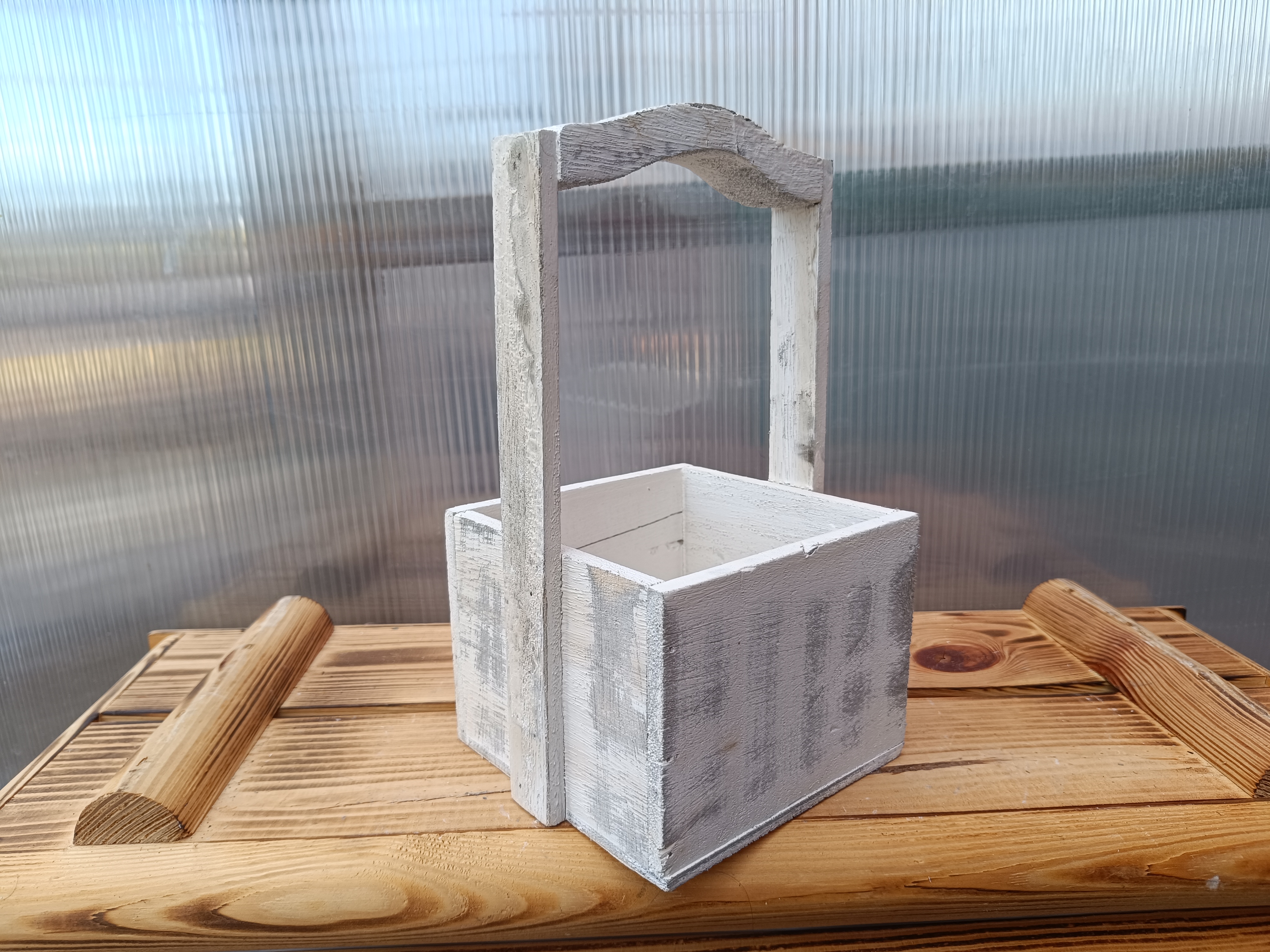 Dřevěný dekorační truhlík - s uchem