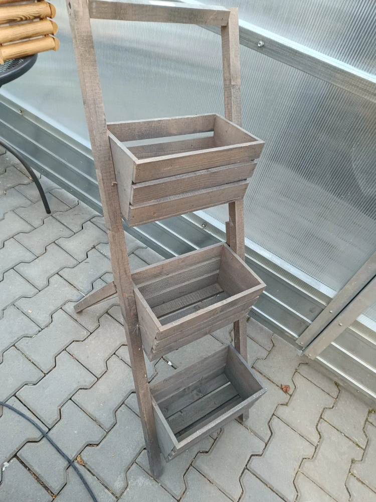 - Dřevěný stojan na tři truhlíky šedo-hnědý36x52x106cm