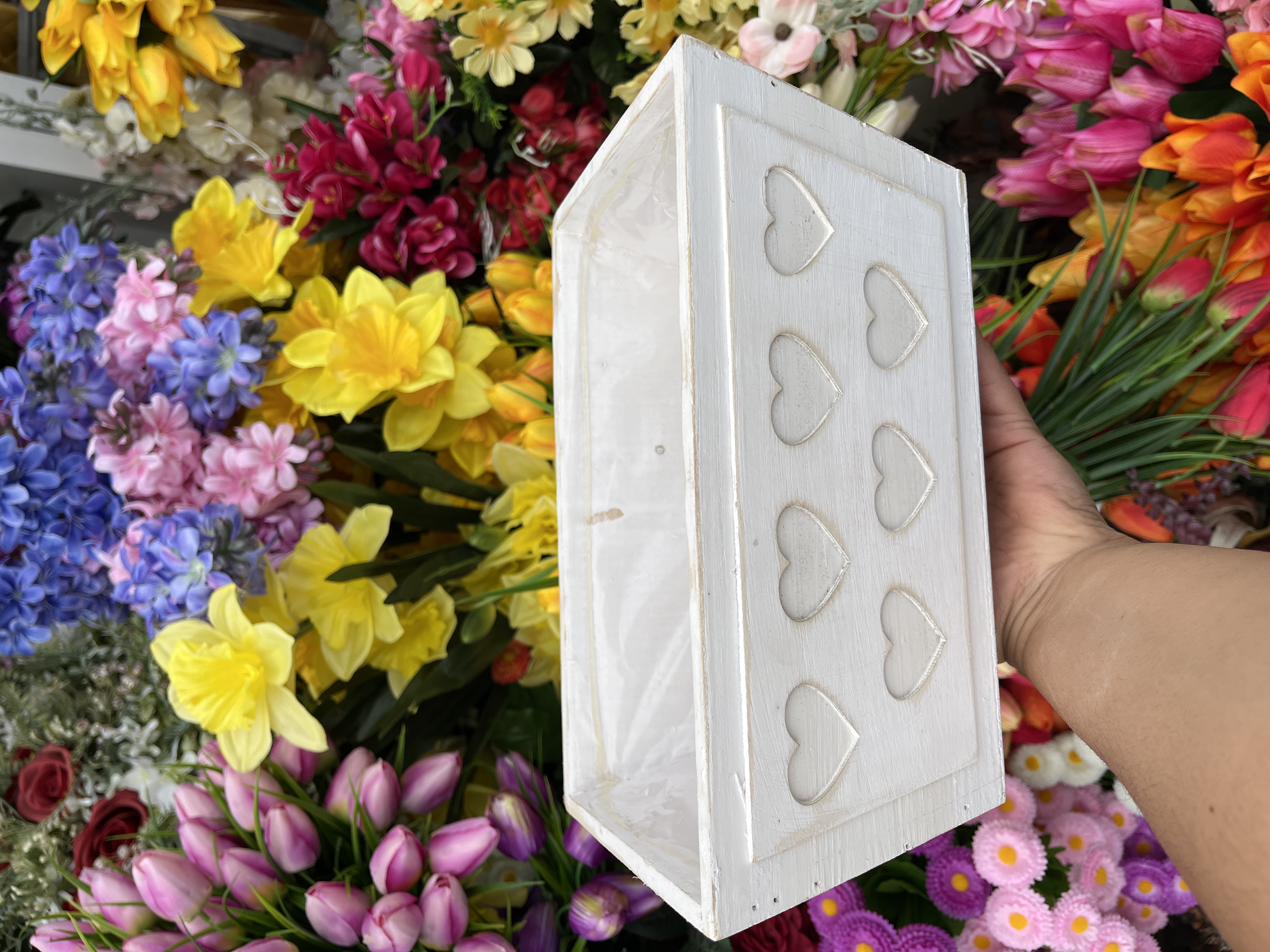 - Dřevěný truhlík se srdíčky 27x17x12cm