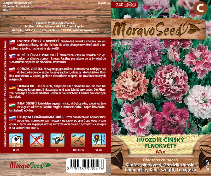 Hvozdík čínský plnokvětý mix osivoSkladem25 Kč/ ks22 Kč bez DPH