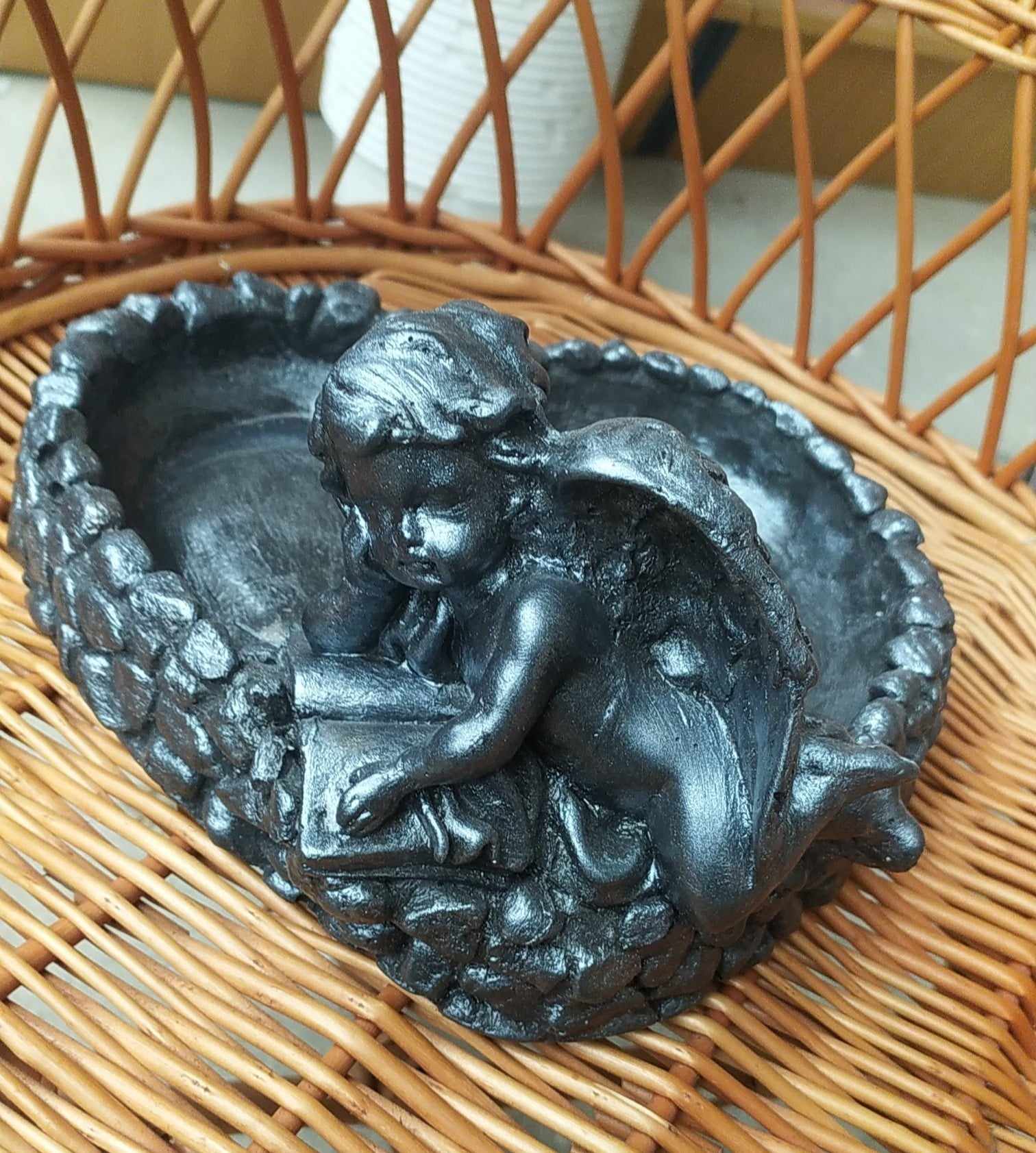 - Kámen ve tvaru srdce s andělem v.14cm antracit
