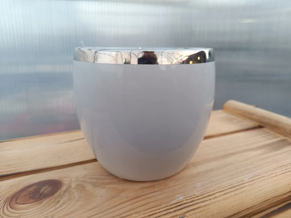 - Květináč keramický - bílý se stříbrným proužkem 11cm