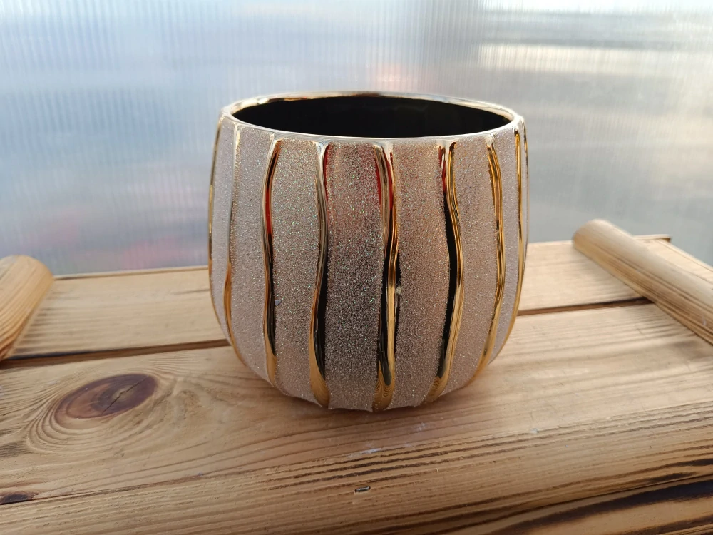 Květináč keramický - zlato-bílý 16cmSkladem199 Kč/ ks164 Kč bez DPH