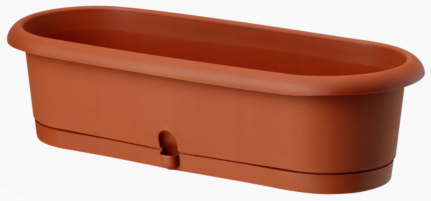 Plastový truhlík s podmiskou má hladký, matný povrch. Díky úzkému tvaru je vhodný zejména na balkón či na bylinky.