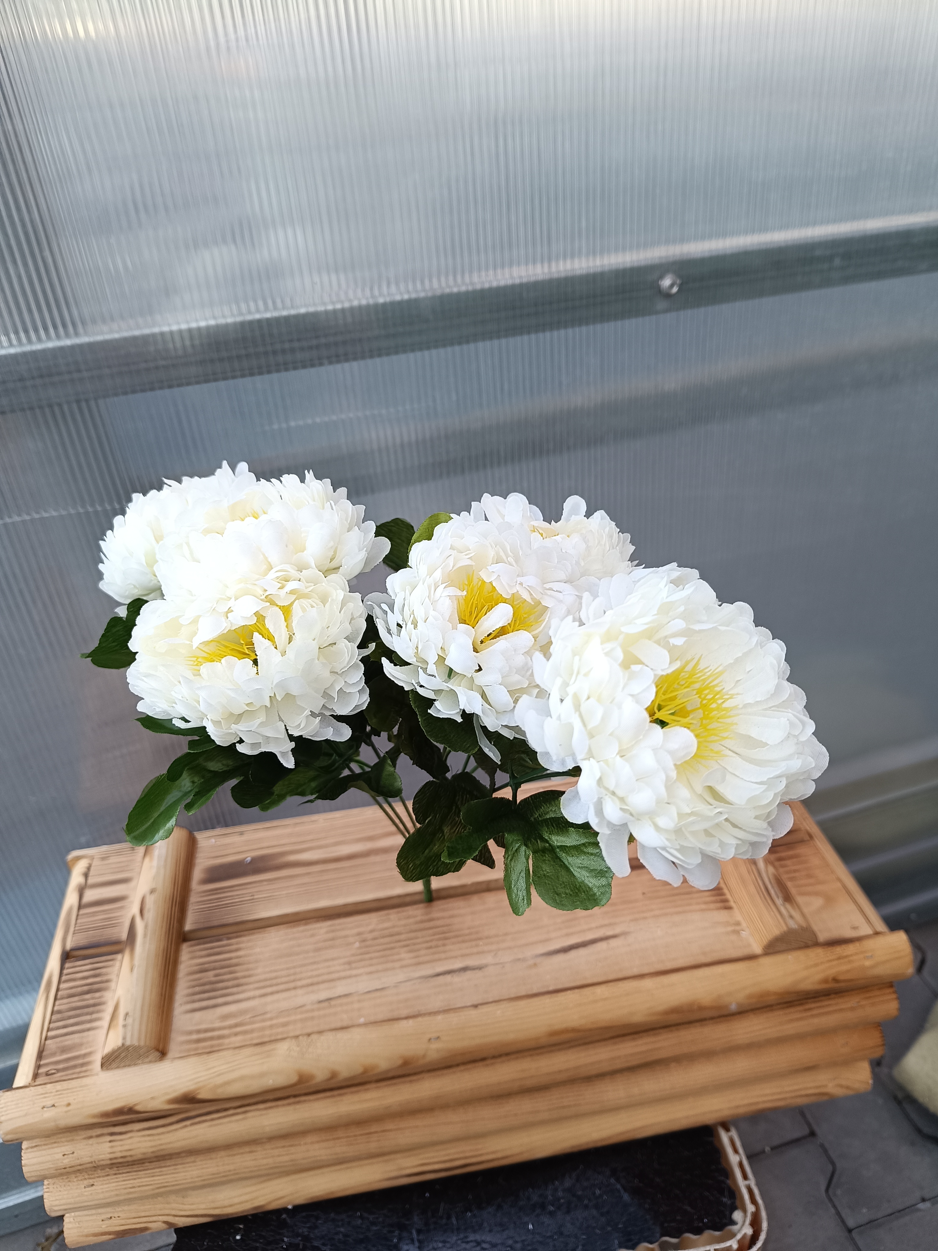 Plastová květina chryzantéma je trvanlivá a nenáročná na údržbu dekorace, která věrně napodobuje vzhled skutečných chryzantém. Ideální pro dlouhodobé použití v interiéru, protože nikdy nezvadne a nevyžaduje zalévání. Skvěle se hodí do váz, kytic nebo jako součást slavnostních aranžmá.