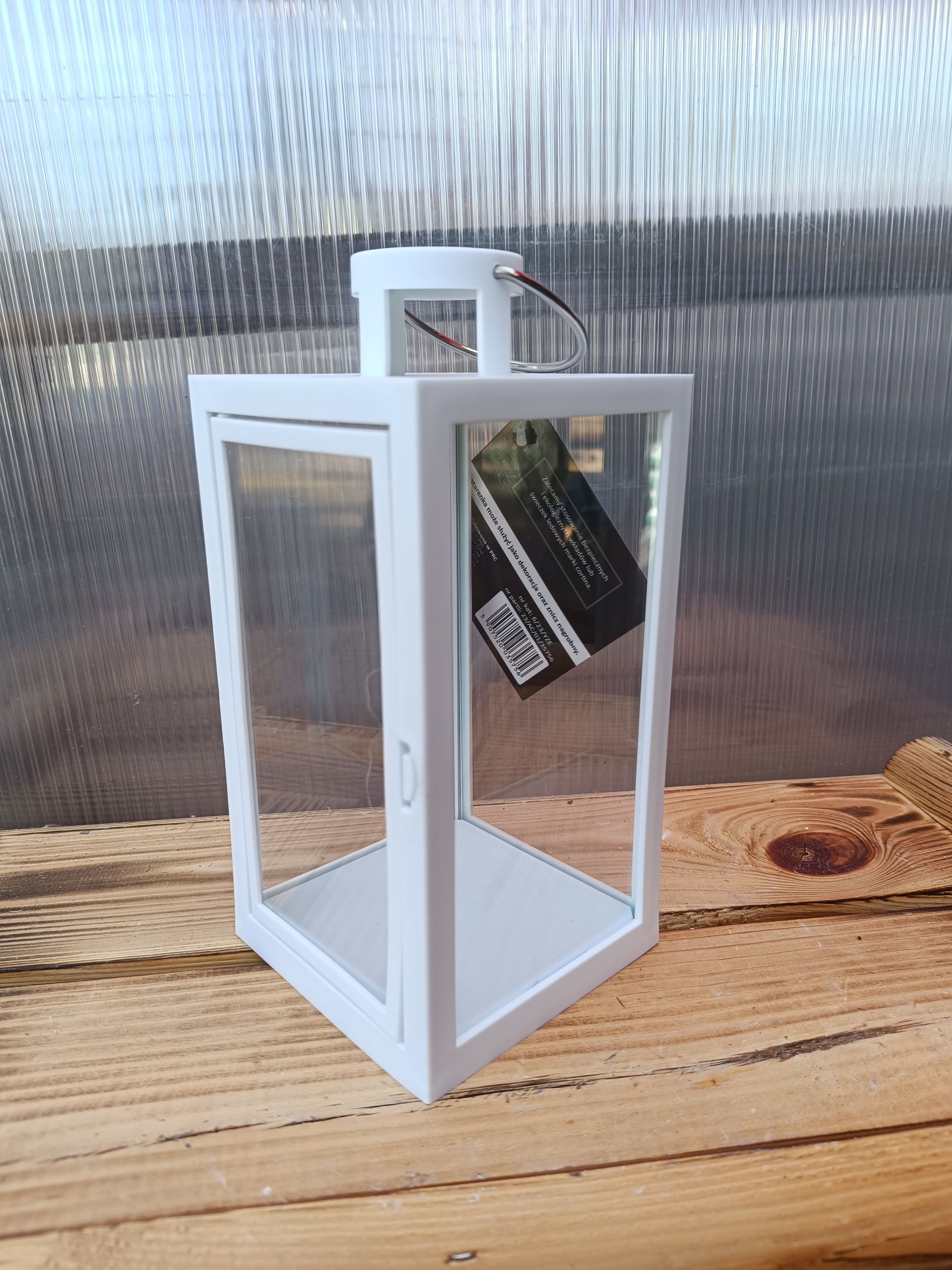 Lucerna plast/sklo prázdná - bílá 20cm