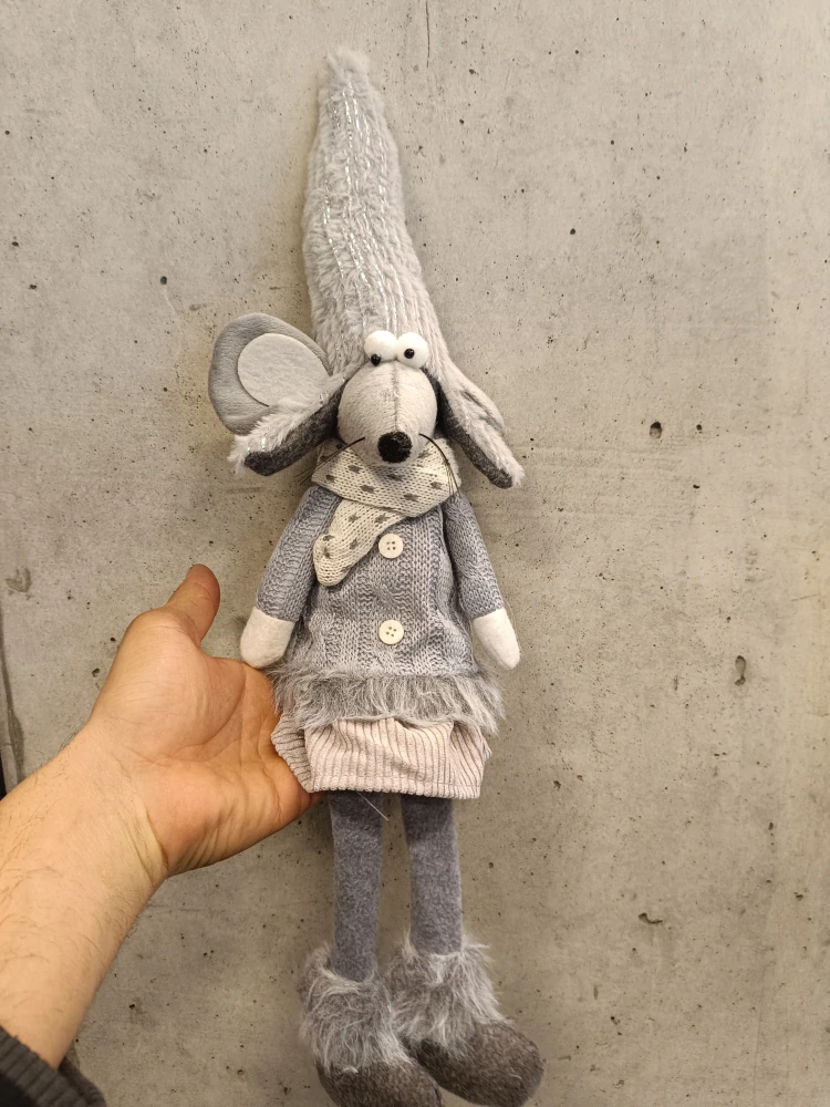 Myška sedící šedý dekorace 35cm