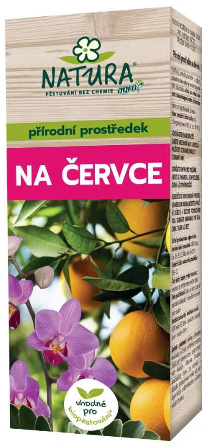 NATURA Přírodní prostředek na červce s UNIKÁTNÍ RECEPTUROU na bázi přírodních látek, s použitím na okrasné rostliny. Rychlý kontaktní účinek s protipožerovým efektem. Je určen na všechny druhy červců jako např. puklice, štítenky, vlnatky apod., kteří se vyskytují na okrasných rostlinách. Je bezpečný pro člověka i užitečné organismy a šetrný k životnímu prostředí.