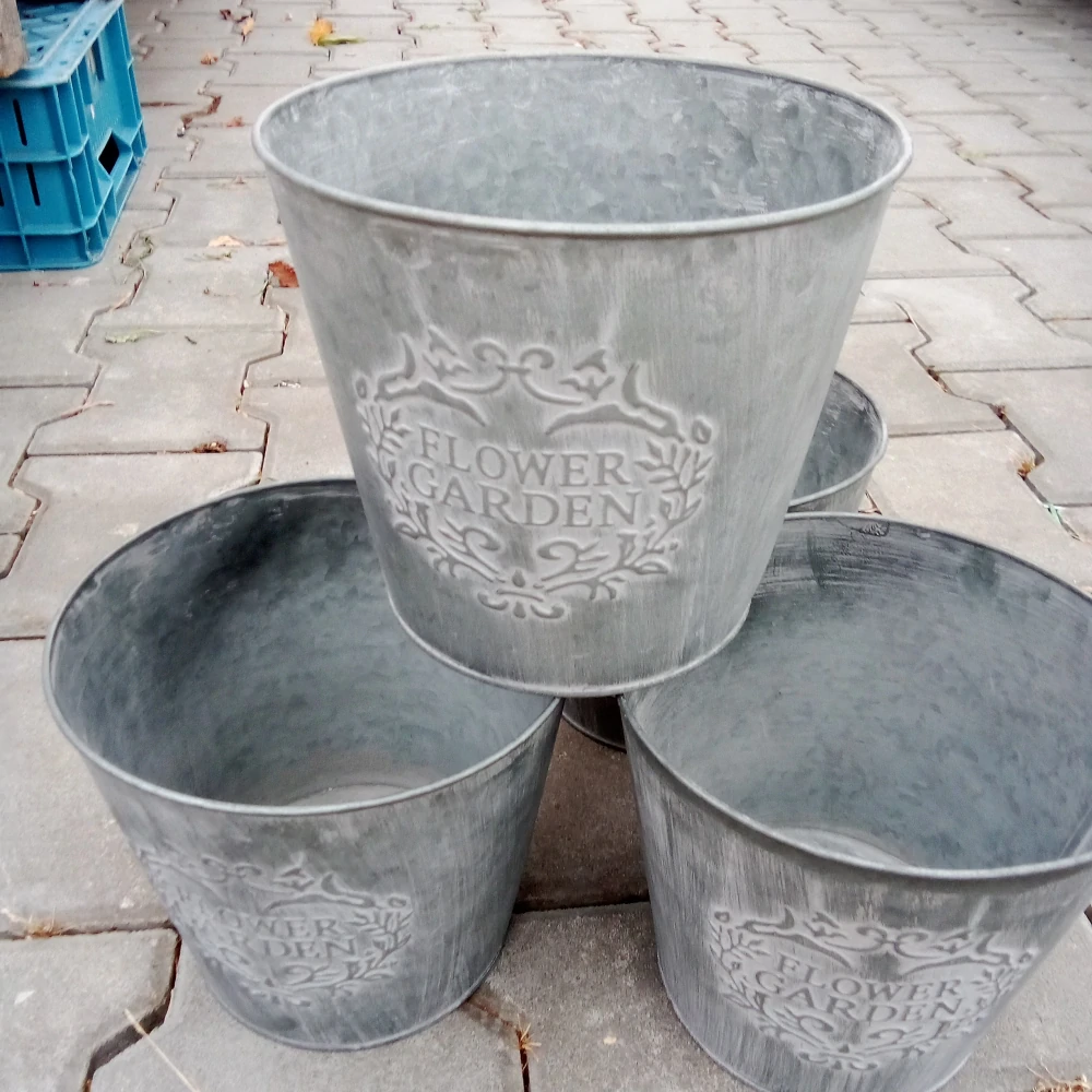 Plechový dekorační obal na kvetináč - kulatý - průměr 18 cm, výška 16 cm - tvar kyblík bez ucha