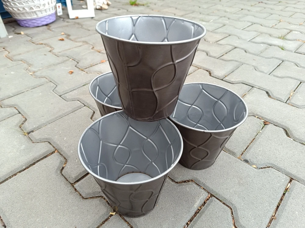 Plechový dekorační obal na kvetináč - kulatý - vrchní průměr 18 cm, výška 16 cm