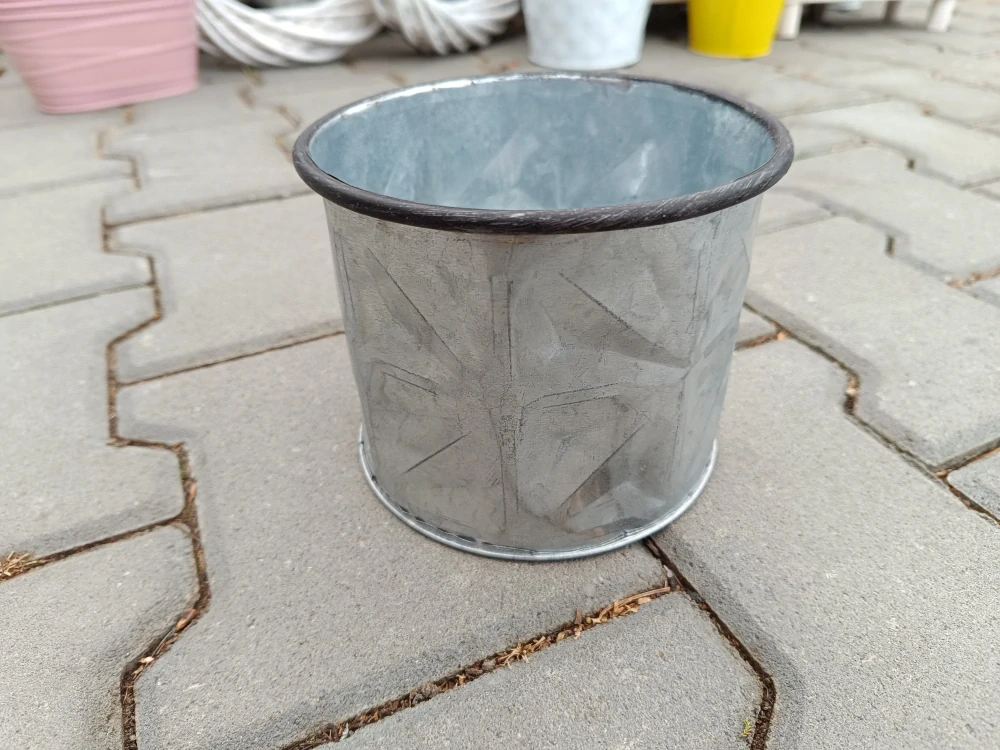Plechový dekorační obal na kvetináč - kulatý - průměr 19 cm, výška 17 cm