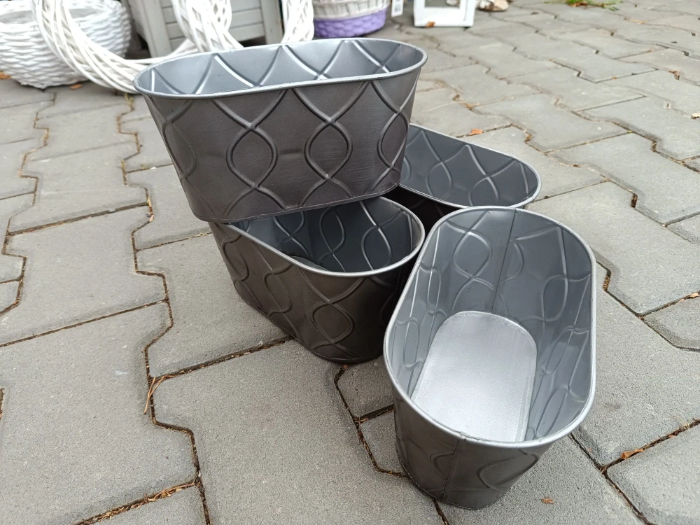 Plechový dekorační obal na kvetináč - oválný - délka 22 cm, výška 20 cm