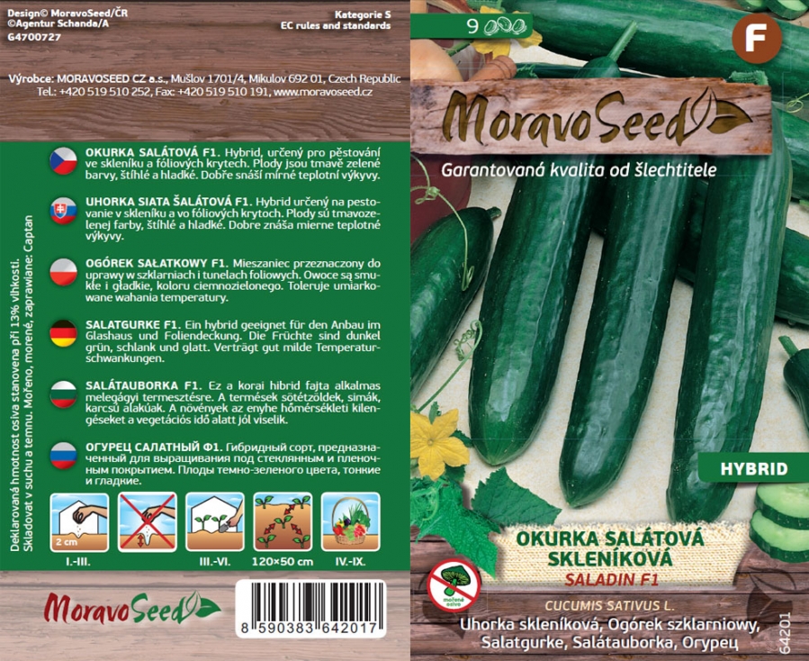 Okurky sal. skleníkové Saladin F1 - osivoSkladem65 Kč/ ks58 Kč bez DPH