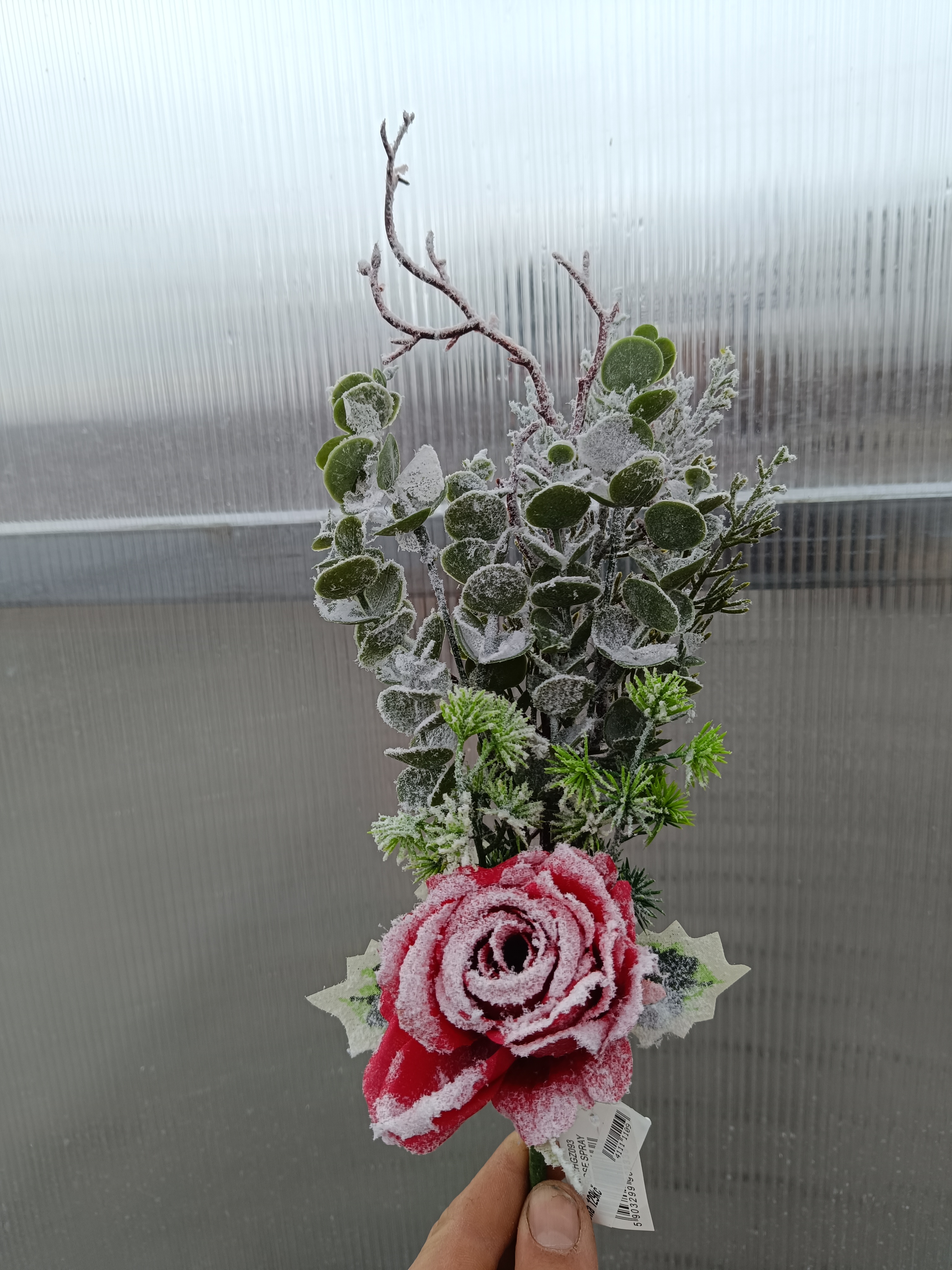 Plastová květina-růže zasněžená - vínová 45cmSkladem129 Kč/ ks107 Kč bez DPH