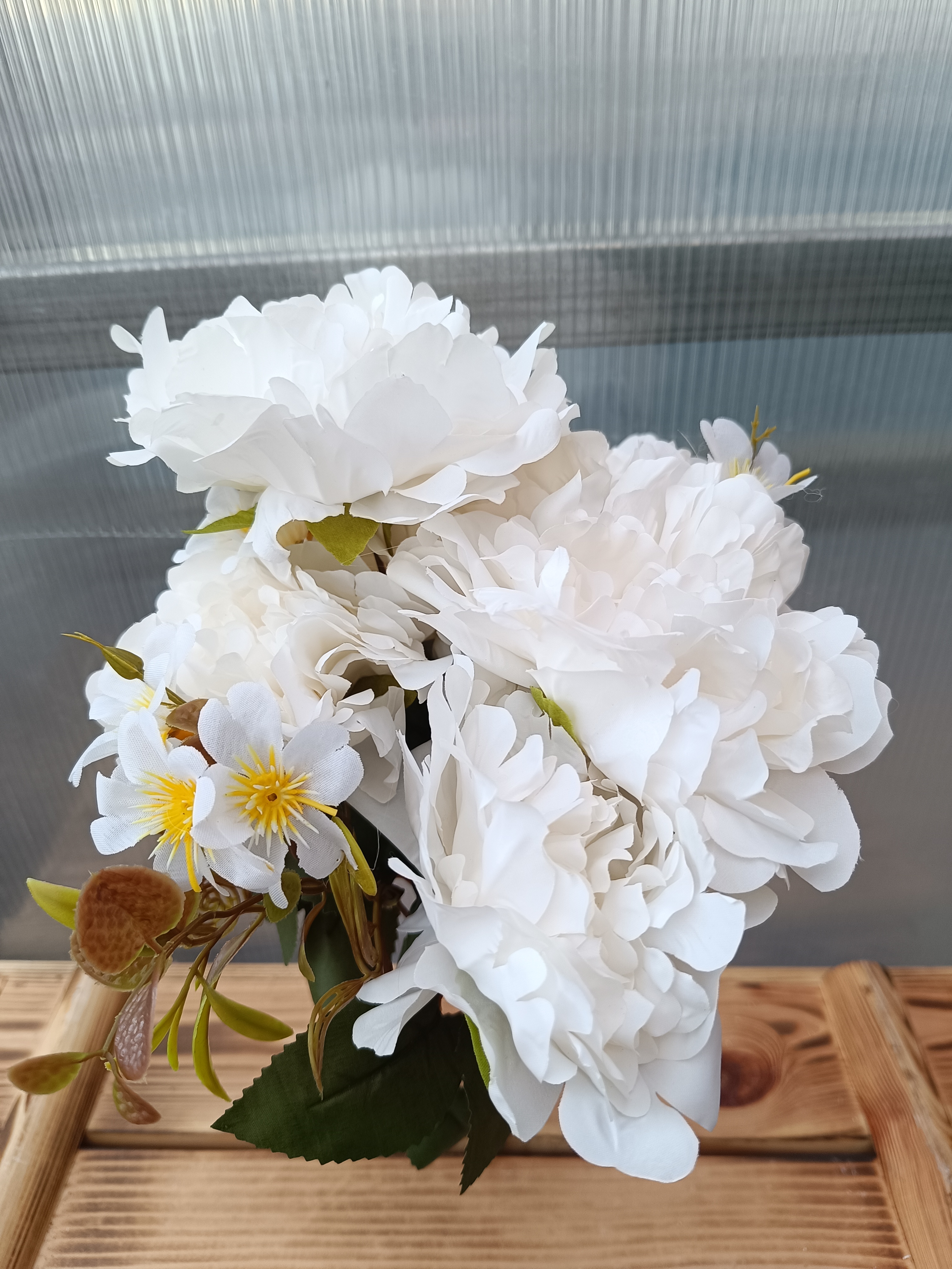 Plastová kytice pivoňky je trvanlivá a bezúdržbová dekorace, která věrně napodobuje vzhled skutečných pivoňek. Ideální pro interiérové aranžmá, protože nikdy nezvadne a nevyžaduje péči. Skvěle se hodí do váz, kytic nebo jako součást romantických a elegantních dekorací.
