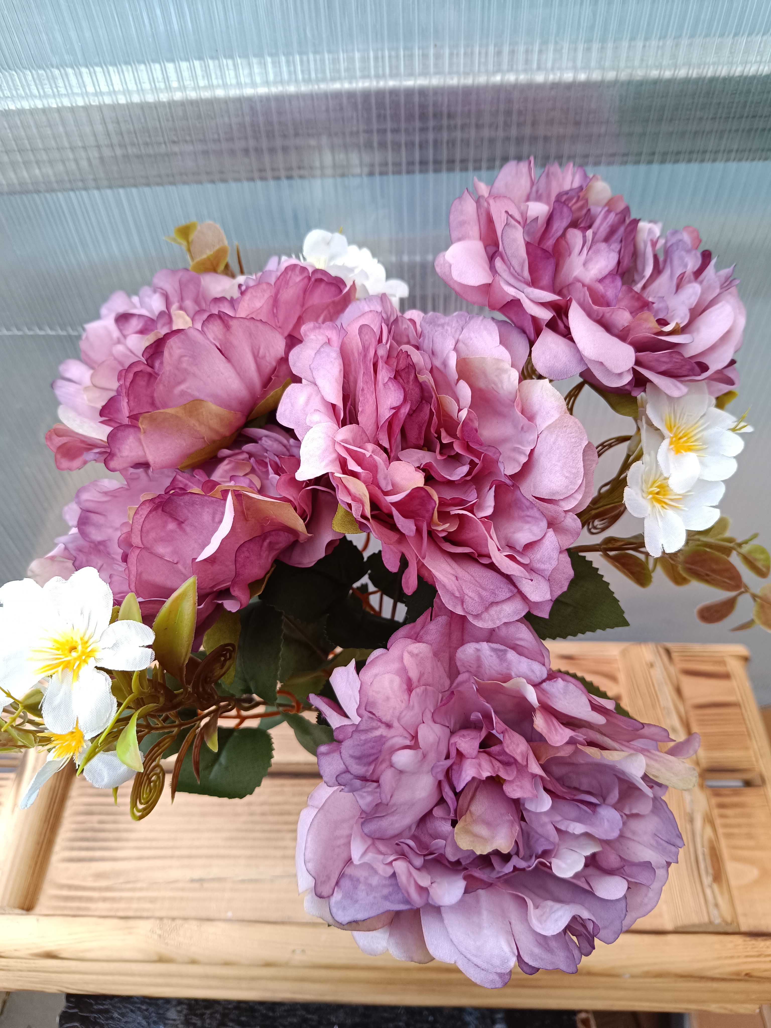 Plastová kytice pivoňky je trvanlivá a bezúdržbová dekorace, která věrně napodobuje vzhled skutečných pivoňek. Ideální pro interiérové aranžmá, protože nikdy nezvadne a nevyžaduje péči. Skvěle se hodí do váz, kytic nebo jako součást romantických a elegantních dekorací.
