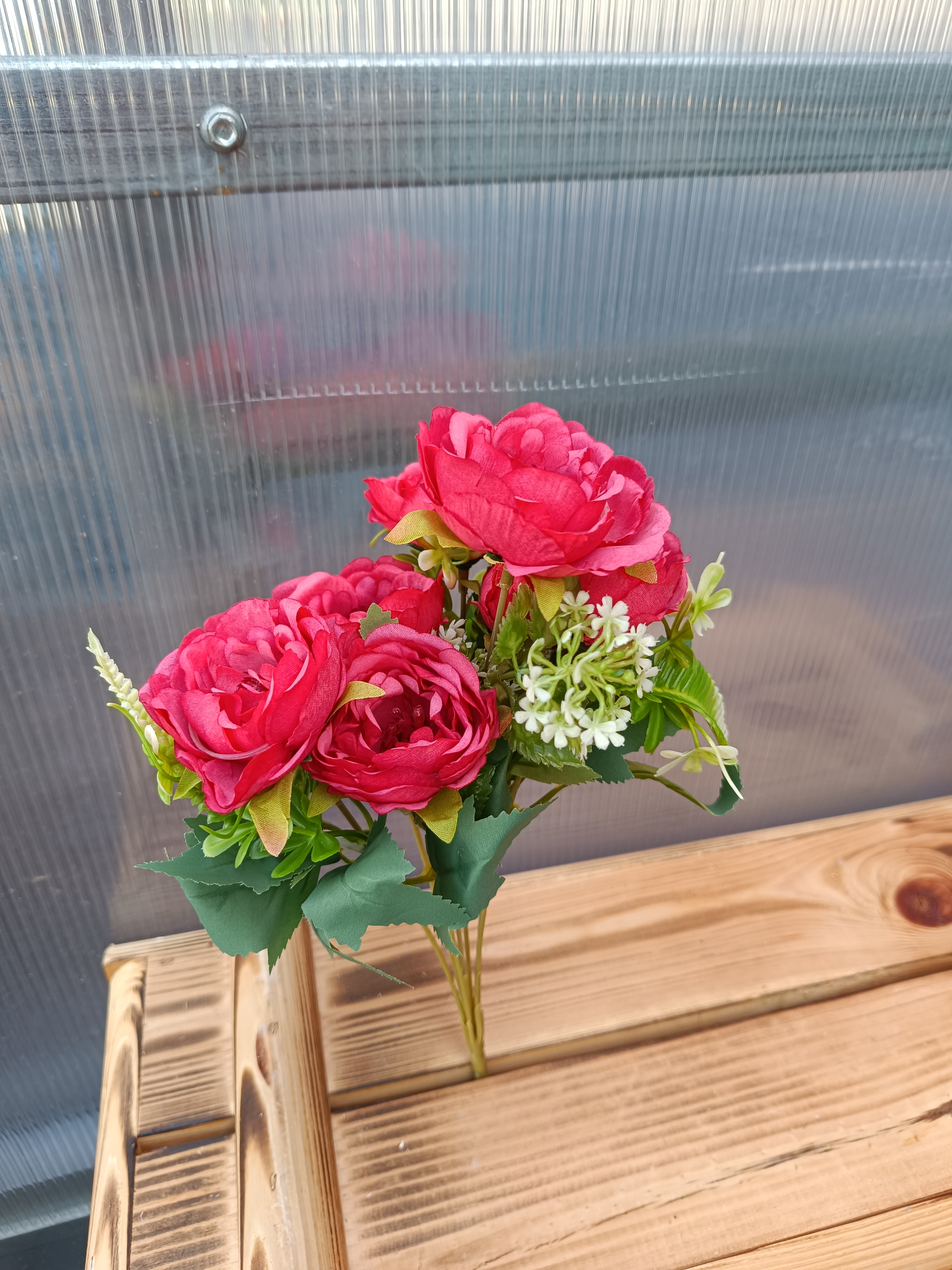 Plastová kytice růží je trvanlivá a bezúdržbová dekorace, která věrně napodobuje vzhled skutečných růží. Skvélé pro interiérové aranžmá, protože nikdy nezvadne a nevyžaduje žádnou péči. Ideální pro vázání, kytice nebo jako součást romantických a elegantních dekorací.