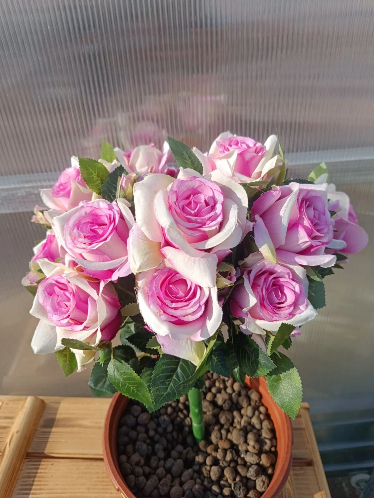 Plastová kytice- růže - 17 květů