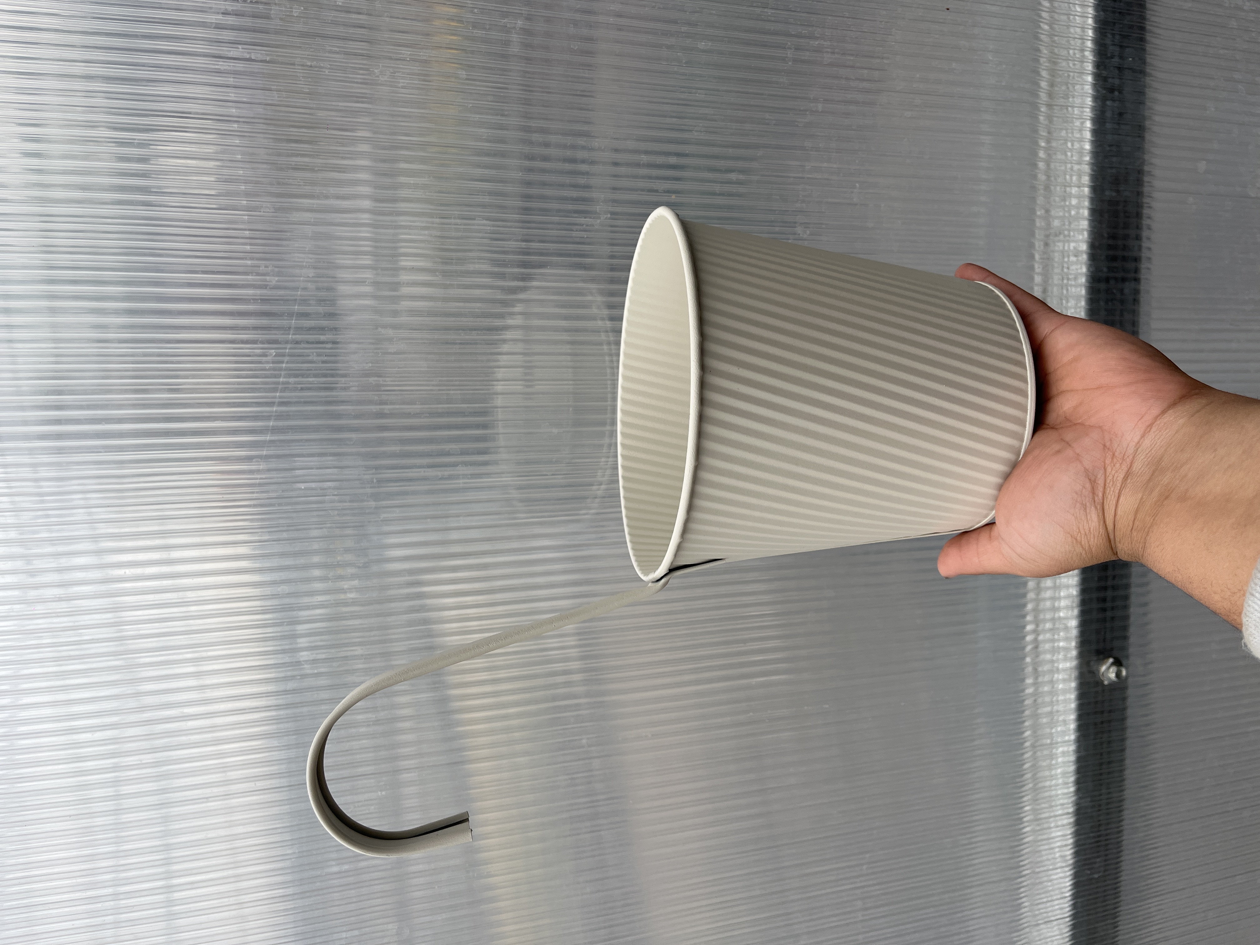 - Plechový květináč béžový s úchytem 14x26cm