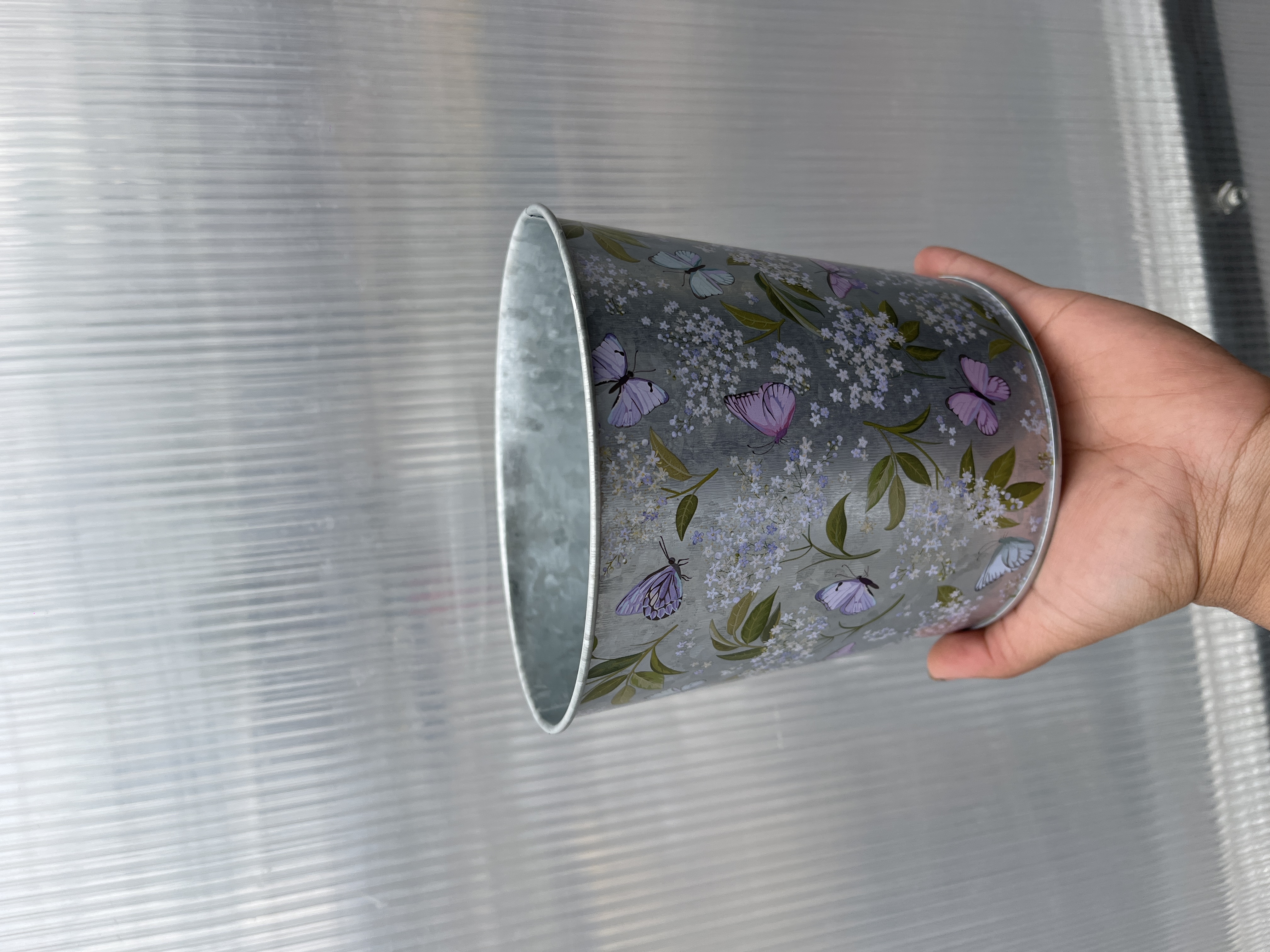 - Plechový květináč s motivem motýlu 15x13.5