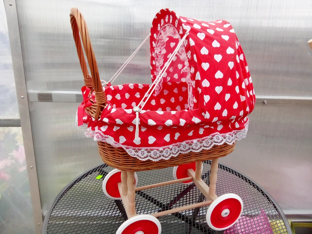 Proutěný kočárek červený se srdíčky 34x22x55cmSkladem699 Kč/ ks578 Kč bez DPH