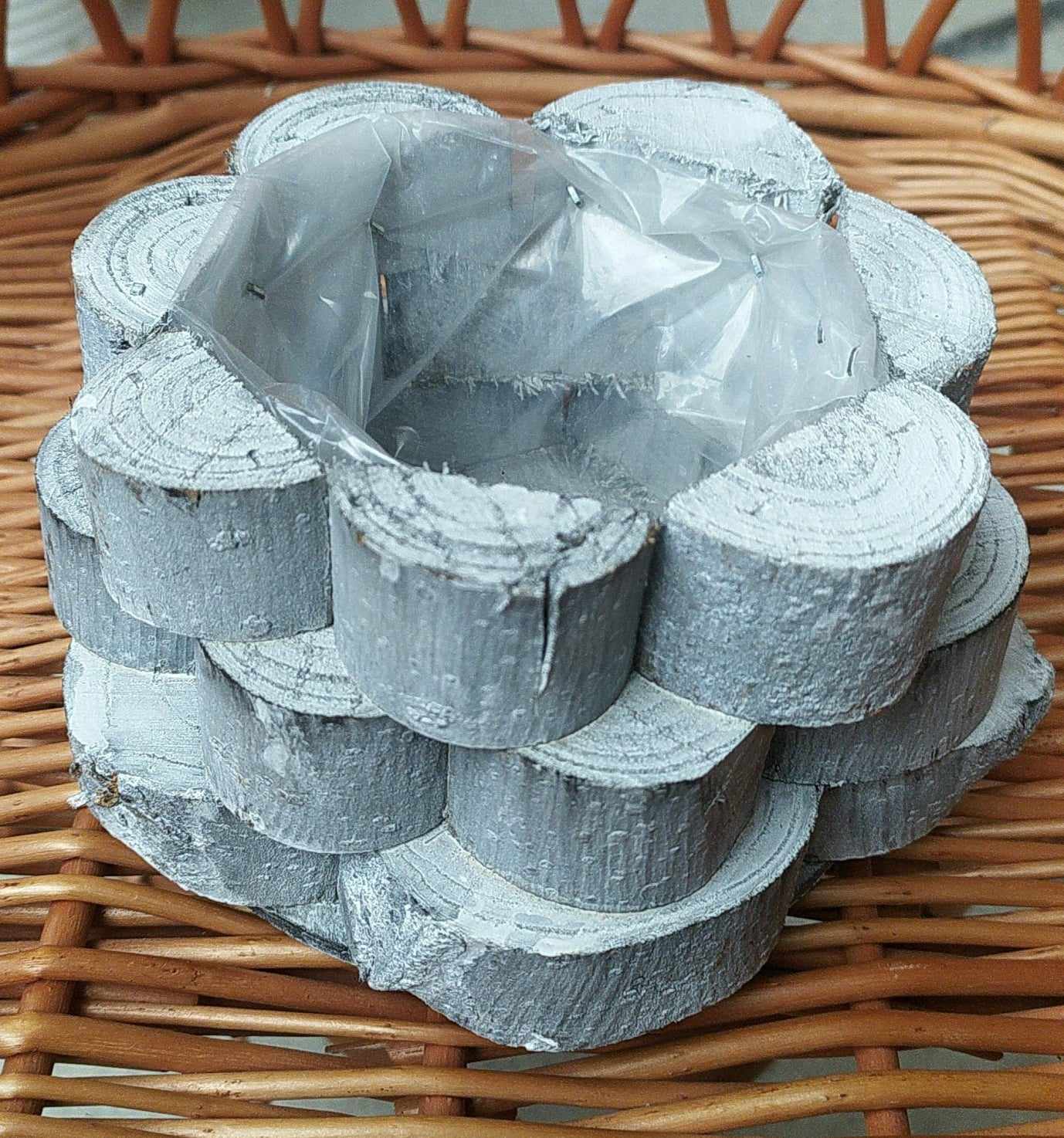 - Dřevěný kulatý květináč
