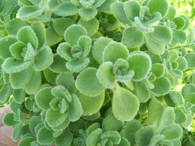 Listy: silně aromatické, masité, plstnaté, zelené
