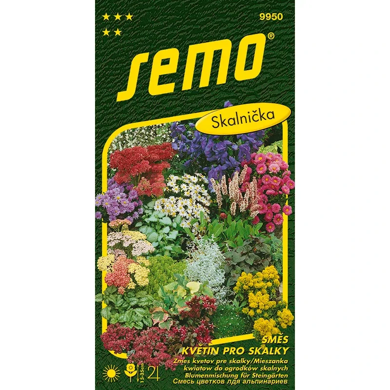 Směs nízkých vytrvalých skalniček pro oživení partií skalek, suchých zídek a do větších nádob. Vyžadují lehčí půdu a stanoviště na plném slunci. Vyséváme od dubna do července, mladé rostlinky přistiňujeme. Vysazujeme na podzim.Směs nejčastěji obsahuje osiva druhů: Alyssum, Arabis, Aubrietta, Campanula, Cheiranthus, Linum, Dianthus, Silene, Viola aj.