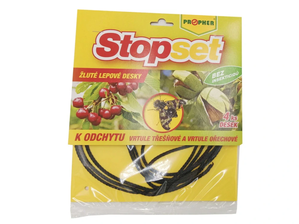 - žluté lepové desky se zavěšují na vnější větve stromů z osluněné strany