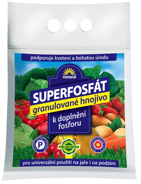 Použití: Superfosfát se aplikuje rovnoměrným rozhozením a následným zapravením do půdy.