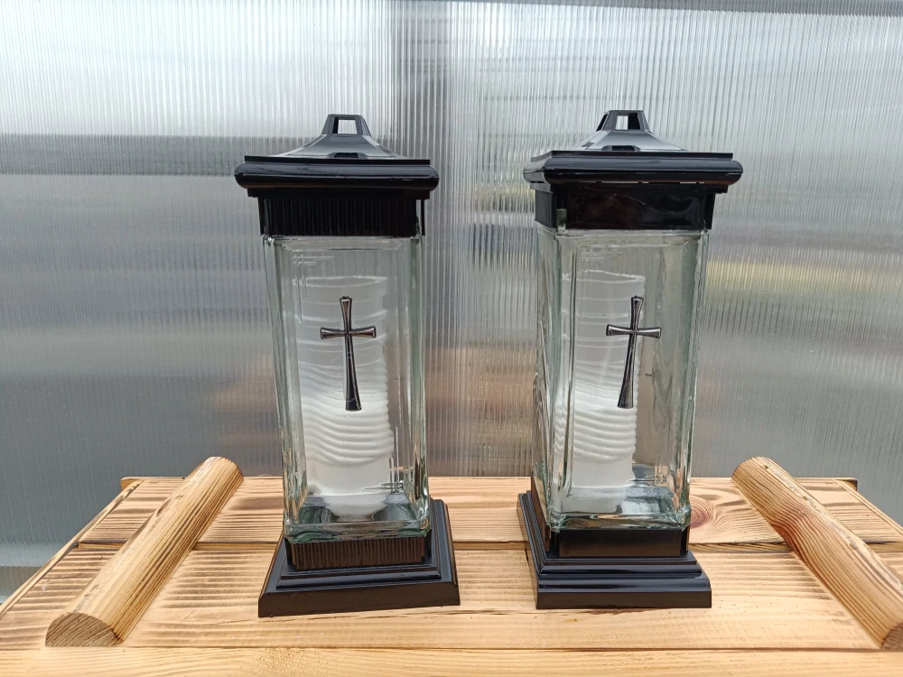 Svícen hřbitovní - kříž - 26cm sklo/plastSkladem99 Kč/ ks82 Kč bez DPH