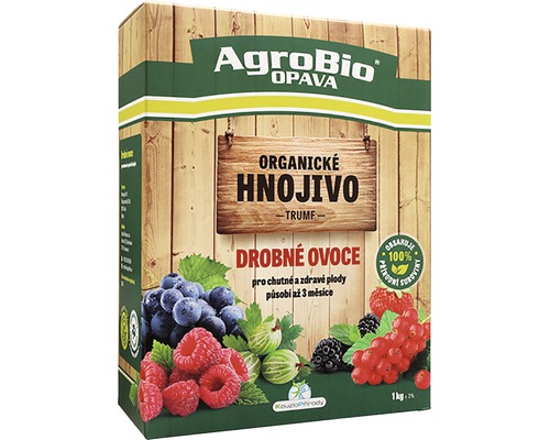 Přírodní (organické) granulované hnojivo pro většinu drobného ovoce (maliny, angrešt, ostružiny, rybíz, jahody…) . Působí až 3 měsíce. Vhodné pro ekologické pěstování.