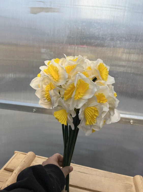 - Umělá květina - Narcis bílo-žlutý 38cm