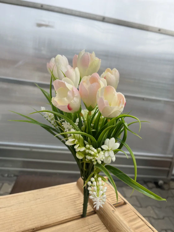 Umělá kytice tulipánů přináší do každého prostoru eleganci a svěžest. Její květy vypadají věrně jako živé a díky kvalitním materiálům si zachovávají krásu dlouho bez nutnosti údržby. Skvělá volba pro jarní dekoraci, která vydrží po celý rok.