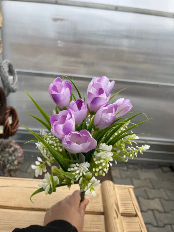 Umělá kytice tulipánů přináší do každého prostoru eleganci a svěžest. Její květy vypadají věrně jako živé a díky kvalitním materiálům si zachovávají krásu dlouho bez nutnosti údržby. Skvělá volba pro jarní dekoraci, která vydrží po celý rok.