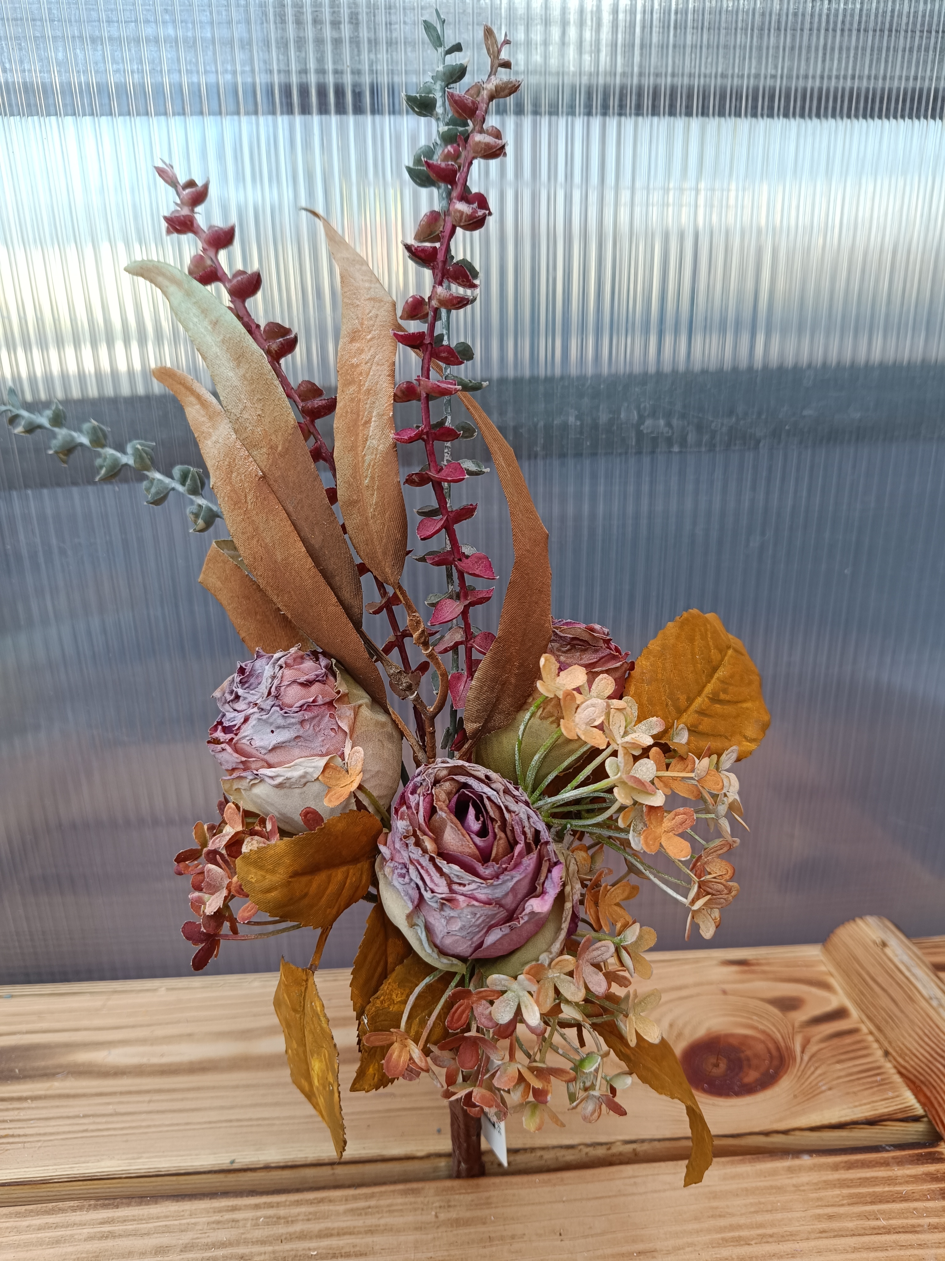 Umělá podzimní kytice s růží a hortenzii 43cm