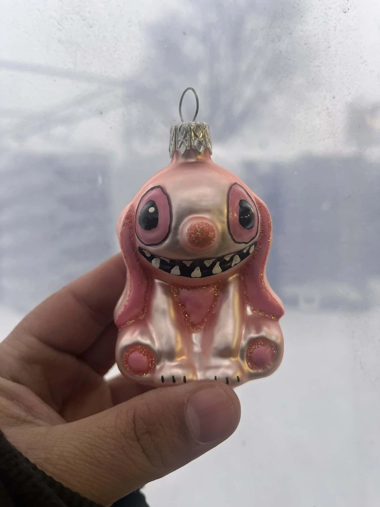 - Vánoční baňka skleněná - Stitch růžový