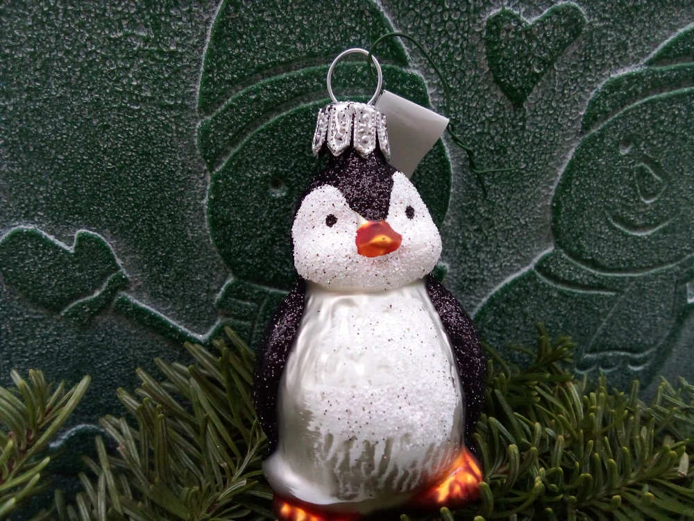 Vánoční baňka skleněná tučňák 7cmV listopadu99 Kč/ ks82 Kč bez DPH