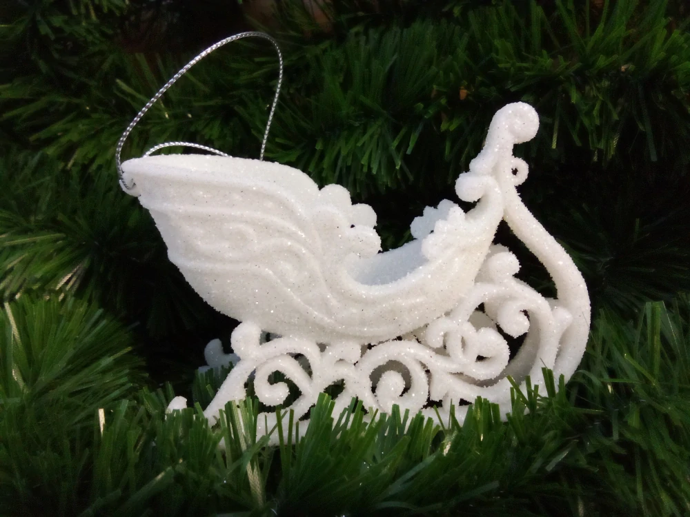 Vánoční dekorace ve tvaru sání, bílé a určené k zavěšení, je nádherný a elegantní prvek, který může přidat vánočnímu stromečku, věnci nebo jiným dekoracím kousek kouzla a nostalgie. Sání je symbolické pro zimní období a vánoční svátky, což z něj činí perfektní volbu pro výzdobu.
