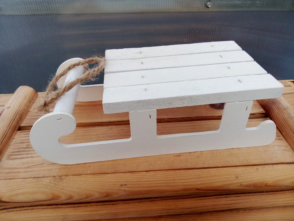 Vánoční dekorace - dřevěné sáně (30 cm) jsou kouzelný a tradiční doplněk, který přinese do vašeho domova zimní atmosféru. Ideální pro ozdobení stolu, poličky nebo jako součást vánoční výzdoby.