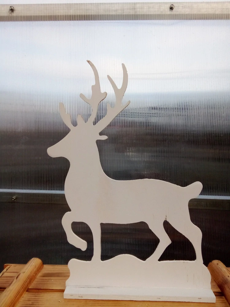 Vánoční dekorace - dřevěný sob bílý (45cm) je elegantní a moderní ozdoba, která skvěle doplní vánoční atmosféru ve vašem domově. S minimalistickým designem v bílé barvě se hodí na stůl, poličku nebo okno.