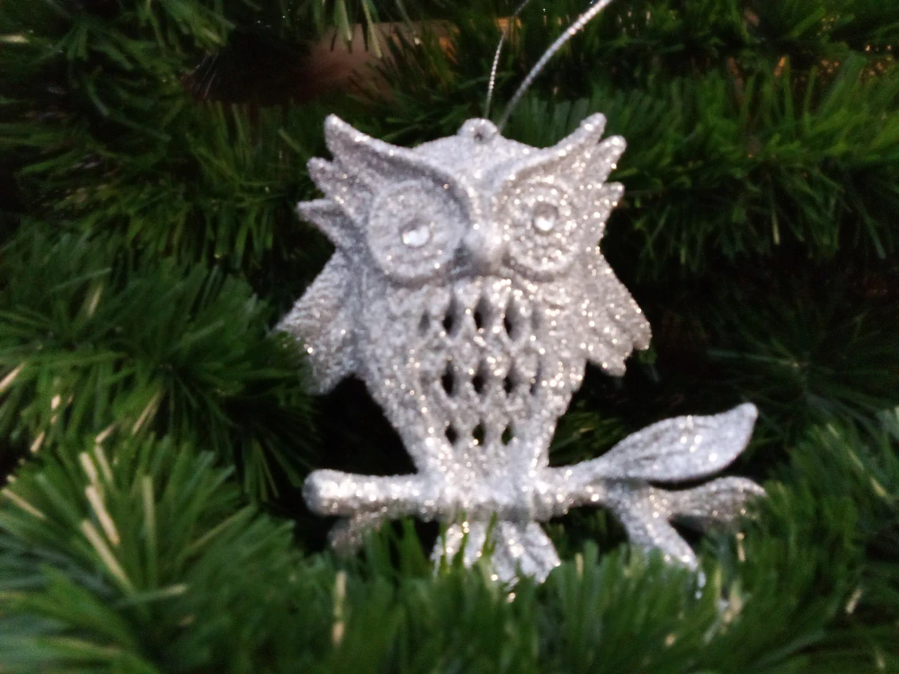 Vánoční dekorace sova postříbřená na zavěšení 11cmV listopadu29 Kč/ ks24 Kč bez DPH